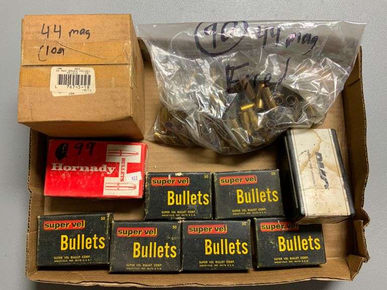 LOT 573 - 44 mag reloading. 190pc brass. 450 bullets.