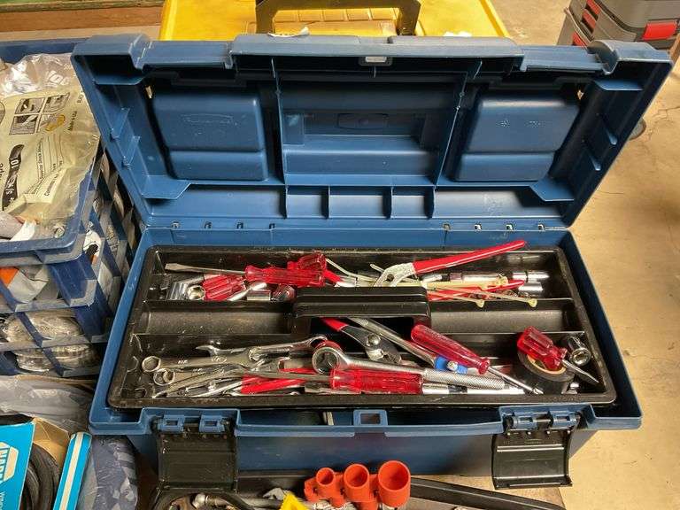 LOT 177 - Rubbermaid Tool Box filled with Tools
