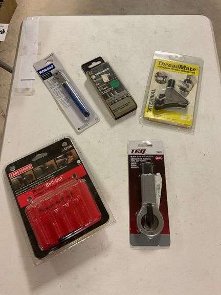 LOT 236 - 1- Craftsman Power Bolt Damaged Bolt/ Screwdriver Remover Set, 1- Thread Mate Universal Thread Repair Tool, 1- Kobalt Glass Cutter, 1- Black & Decker 5 Piece Screw Ejector Set