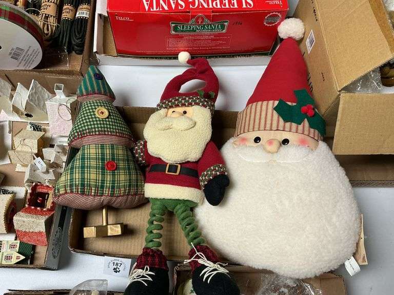 LOT 187 - Stuffed Santa Head, Snowman Door Hanger, Stuffed Christmas Tree