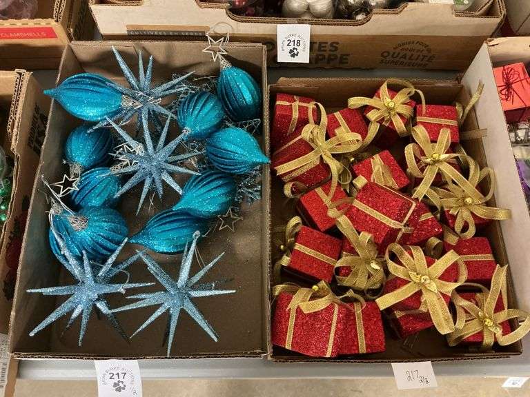 LOT 217 - Christmas Glitter Starburst Spike, Elongated Tear Drop, Red Christmas Present