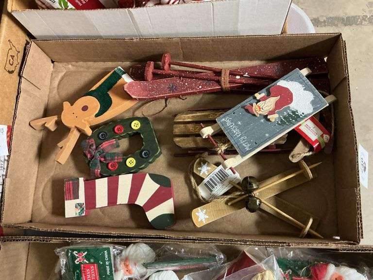 LOT 240 - Wooden "JOY" Sign, Wooden Sleds and Ski Decorations