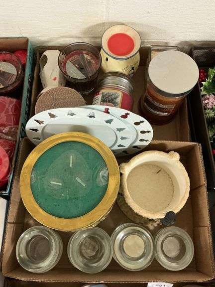 LOT 281 - American Candle Balsam Fir Scent, Candle Holders, Snowman Dishes, Assortment of Different Scented Candles