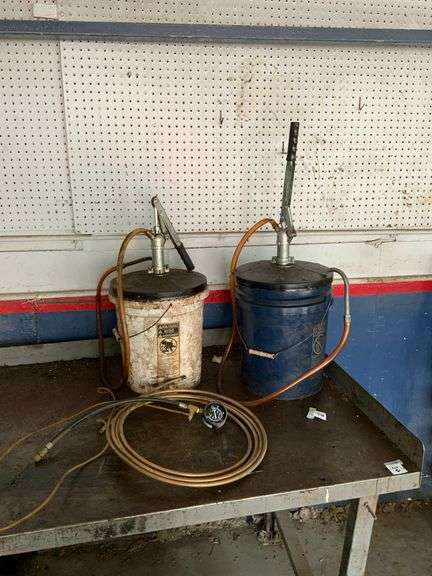 LOT 425 - 2- 5 Gallon Oil Lube Dispensers with Lever Action Pumps