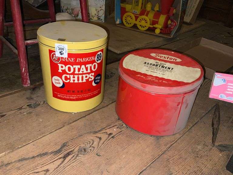 LOT 300 - Jane Barker Potato Chip Tin & Sexton Cookie Tin