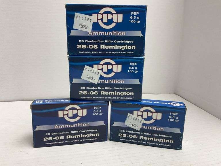 LOT 83 - 4 boxes of PPU 25-06 100gr SP ammo
