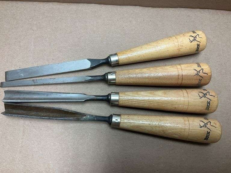 LOT 204 - Buck Bros. chisels 1 each of: V, gouge, parting and straight