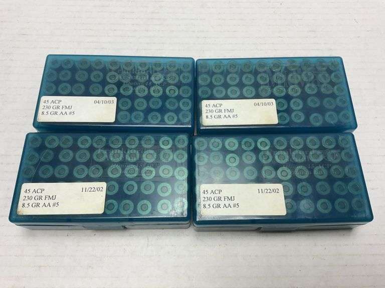 LOT 355 - x4 boxes of 45auto reloads. 230gr fmj.