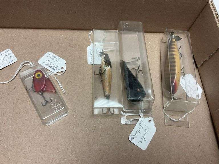 1- sail fish red, 1-pikie glass eye, 1- chugg glass eye, spinner minnow glass eye. see photos for details. all for one money.