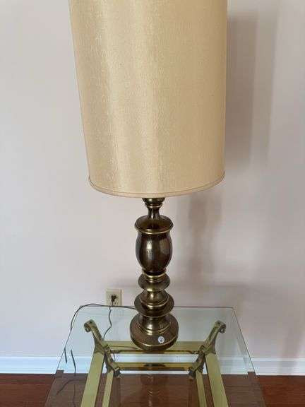 Brass lamp with shade. Stands 34 1/2 inches tall