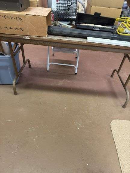 LOT 48 - Folding table, show some use and wear, contents on top not included