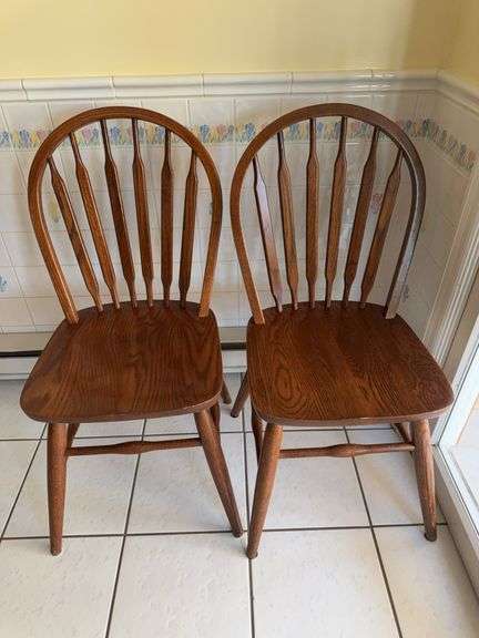 Five Oak plank bottom Bentwood arrow back chairs made by Denaire furniture company Buffalo, New York.