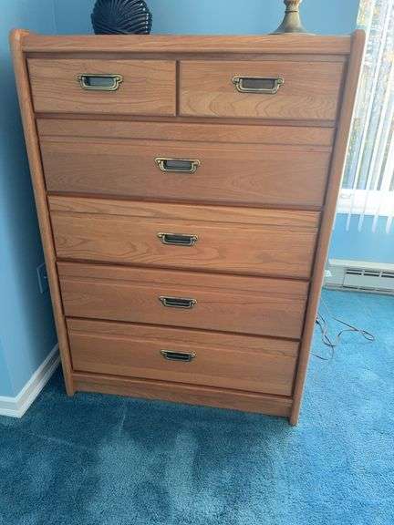 Oak two over four chest of drawers, Sumter furniture company, Sumter, North Carolina. 50 inches high by 35 inches wide by 19 inches deep