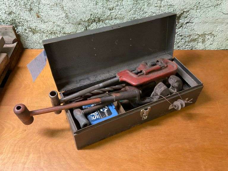 3 pipe cutters. large box of pipe taps and & thread dies. all for one money