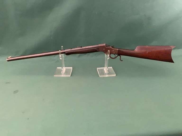 24" barrel, antique rifle, Bore pitted, lock-up is loose, all metal turned brown, hole drilled next to tang screw, wood is solid with small crack starting at tang and small chip at toe, see photos for details