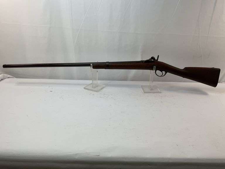 34" BARREL, SHOTGUN, SN 3733, CONVERTED ZOUVE SHOTGUN, BORE CLEAN WITH PITTING, FIRING PIN SPRING MISSING, METAL BROWN W/ CORROSION, WOOD HEAVY WEAR WITH CRACK AT LOCK, SEE PHOTOS FOR DETAILS