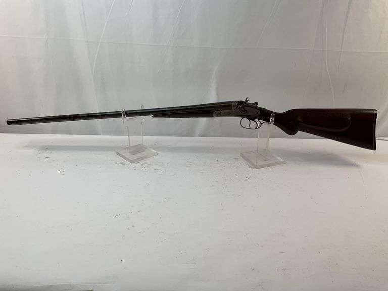 29" BARREL, BLACK POWDER SHOTGUN, SN 40958, PITTED BORES, HAMMERS DON'T HOLD, METAL BROWN WITH CORROSION, REPLACEMENT SCREWS, WOOD SOLID WITH HEAVY VARNISH ADDED, SEE PHOTOS FOR DETAILS