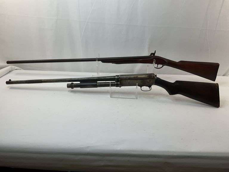 NO MAKE NO MODEL, SN NSN, 36" BARREL, ANTIQUE PERCUSSION SHOTGUN, LOCK WORKS, BORE CORRODED, HEAVY RUST & PITTING, STOCK IS SOLID BUT CRACKED AT BUTTPLATE, SEE PHOTOS FOR DETAILS 2 OF 2 WINCHESTER REPEATING ARMS CO. 1911 SL, 12 GA, 26" BARREL, SHOTGUN, SN 59166, HANDGUARD MISSING, HEAVY RUST & CORROSION, BUTT STOCK CRACKED WITH HEAVY WEAR, MAY NOT BE COMPLETE SEE PHOTOS FOR DETAILS, BY THE PIECE TIMES THE MONEY 2X