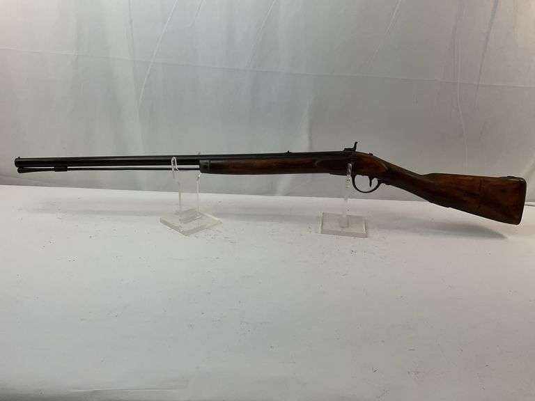 30" BARREL, BLACK POWDER SHOTGUN, SN NSN, ANTIQUE PERCUSSION SHOTGUN, WITH RAM ROD, LOCK WORKS BUT HAMMER IS LOOSE, HEAVY RUST & PITTING, SEE PHOTOS FOR DETAILS